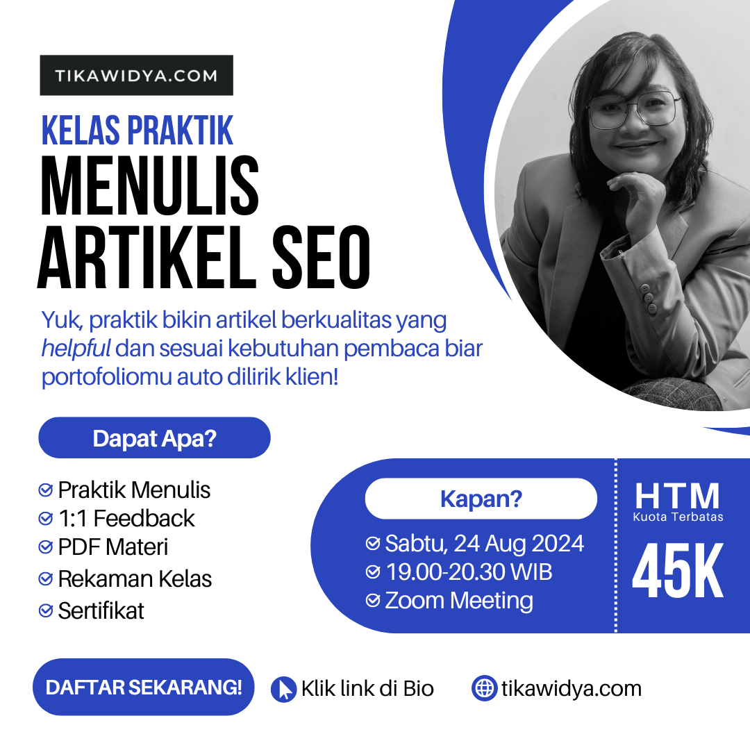 Kamu akan belajar menulis kisah pribadi dari awal sampai jadi. Kelas ini membimbingmu menulis sampai punya satu karya siap publikasi dalam 8 hari. Semua peserta juga mendapat pendampingan langsung dari coach serta dua sertifikat di akhir program.